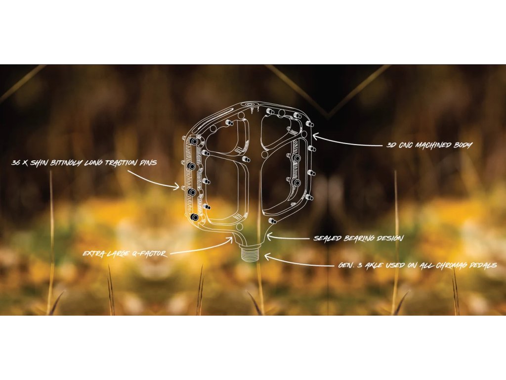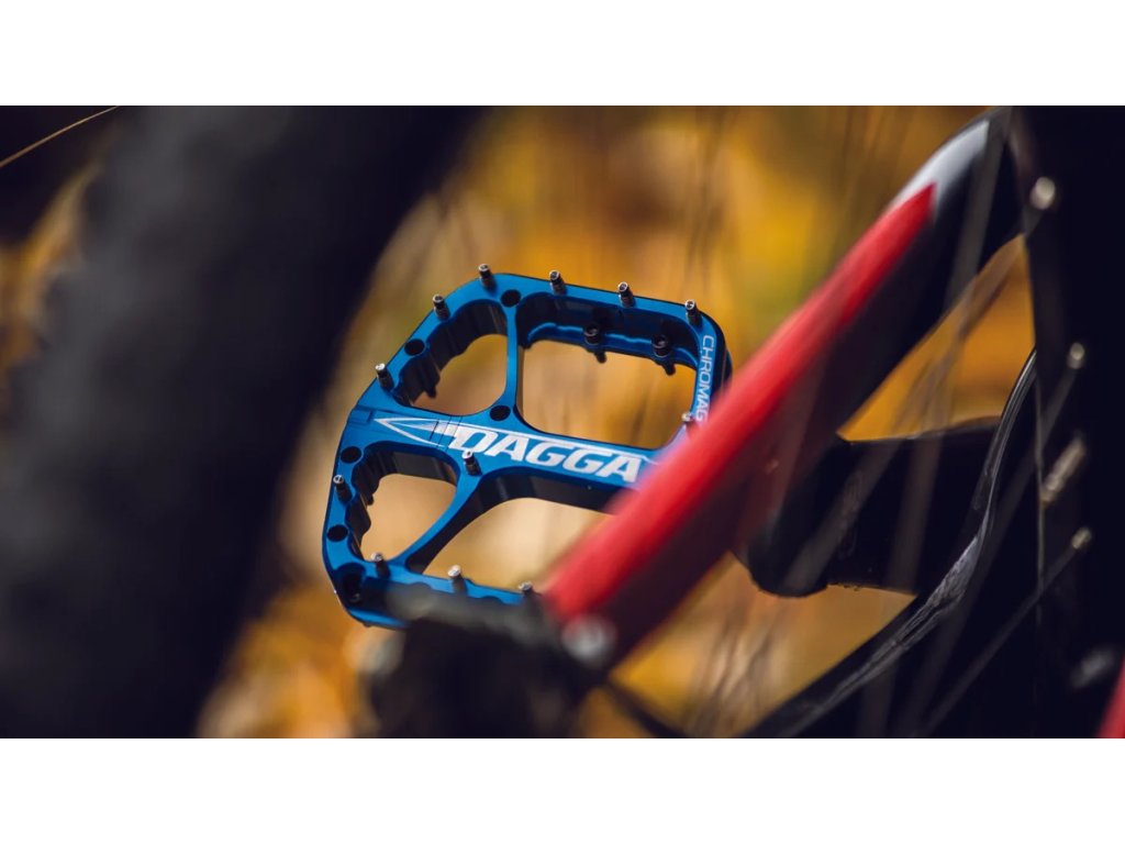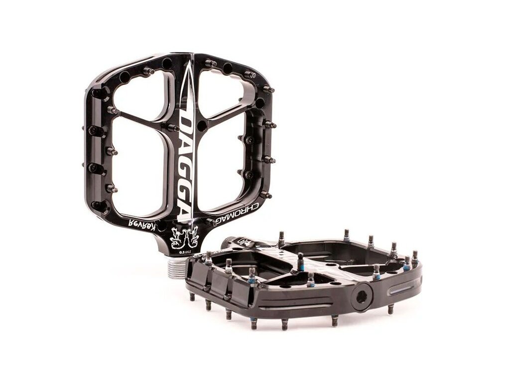 Nejodolnější a největší model od Chromagu. Velikánská platforma pro nejširší postoj (největší Q-faktor) a nekompromisní grip. Na tvorbě modelu Dagga se podílel Chris Kovarik. Všechny pedály Chromag mají G3 systém - CrMo osa, dvojité těsnění, vnitřní pouzdro, precizní zapouzdřená ložiska. Odolný a plně servisovatelný systém.