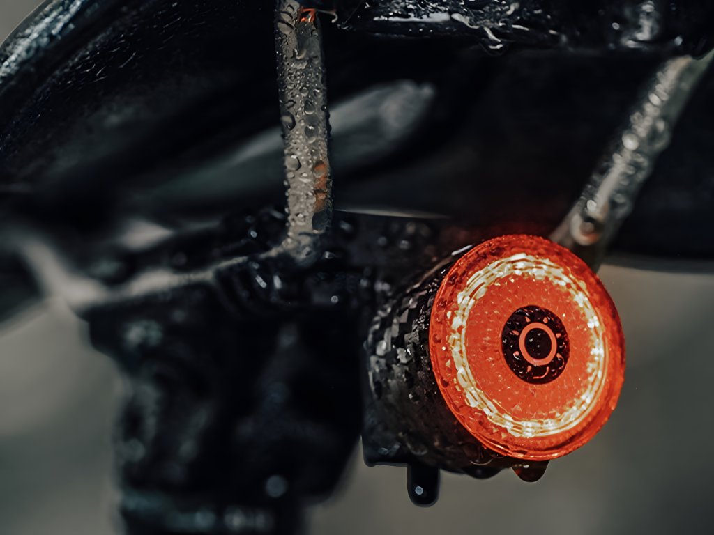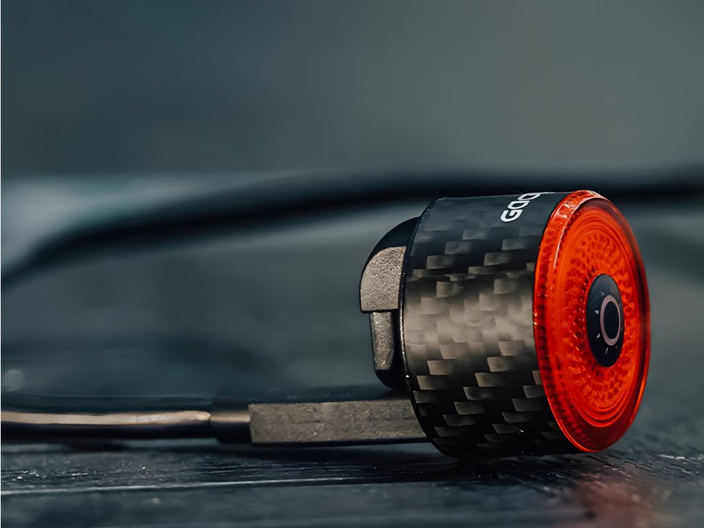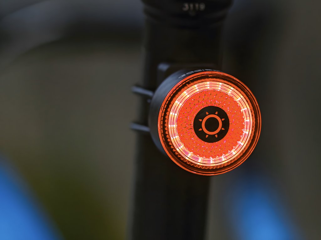 Zadní světlo s detekcí brždění a s výkonem až 100 lumenů v karbonovém pouzdru.