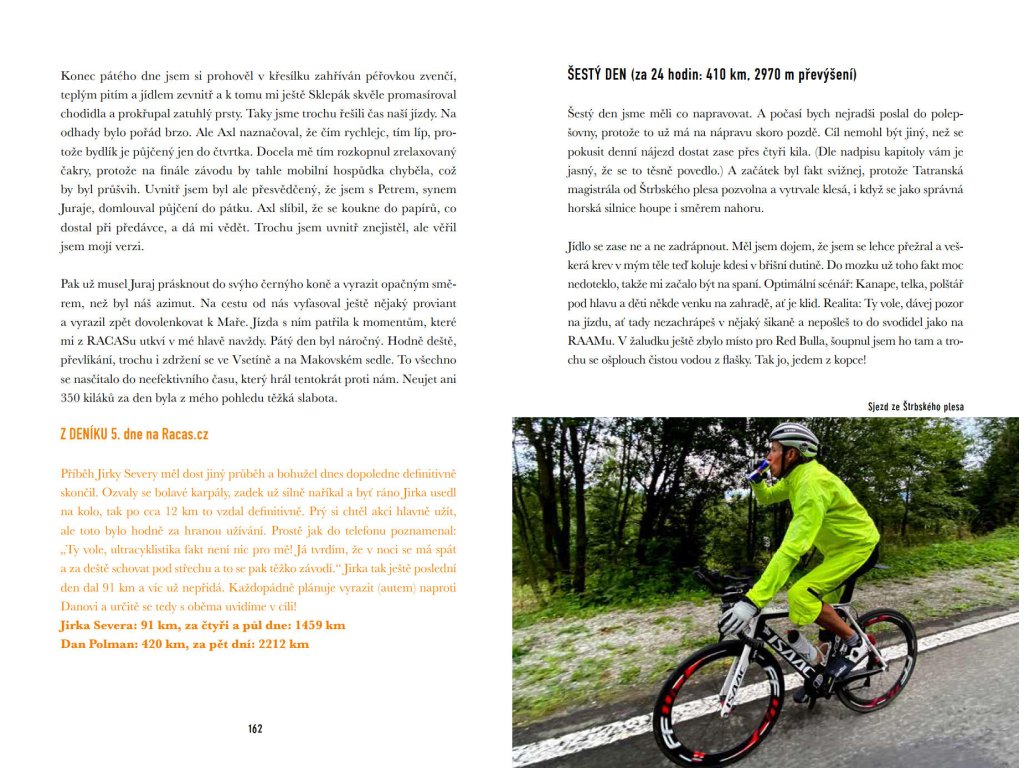 V knize popisující neuvěřitelnou 3 540 kilometrů dlouhou jízdu po české a slovenské hranici se přidáte k Ultra Paka Racing Teamu a zažijete bláznivý závod Race Around Czechia & Slovakia z pohledu jezdce a jeho doprovodu. K tomu ještě absolvujete dvacet bonusových odboček do života „ultrapaka” Dandy Polmana. Kniha je doplněná o desítky fotografií Tadeáše Kopči, fotografa a člena Danova doprovodného týmu. Jediné, co na cestě skrze 264 stran nezažijete, je nuda. Jinak buďte připraveni úplně na vše!