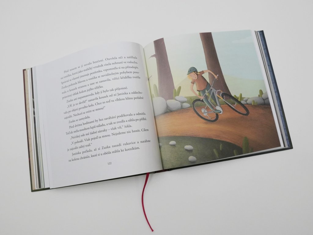 Autorem je zakladatel Bajkové školy na Rychlebských stezkách a o ilustraci se postarala šikovná Kristýna Havlická, skvělá bajkerka a mimo jiné i autorka první grafiky triček Trail Hunter.