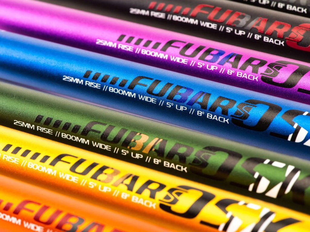 Barevná řídítka od Chromagu s průměrem 31,8 a zdvihem 25 mm.
