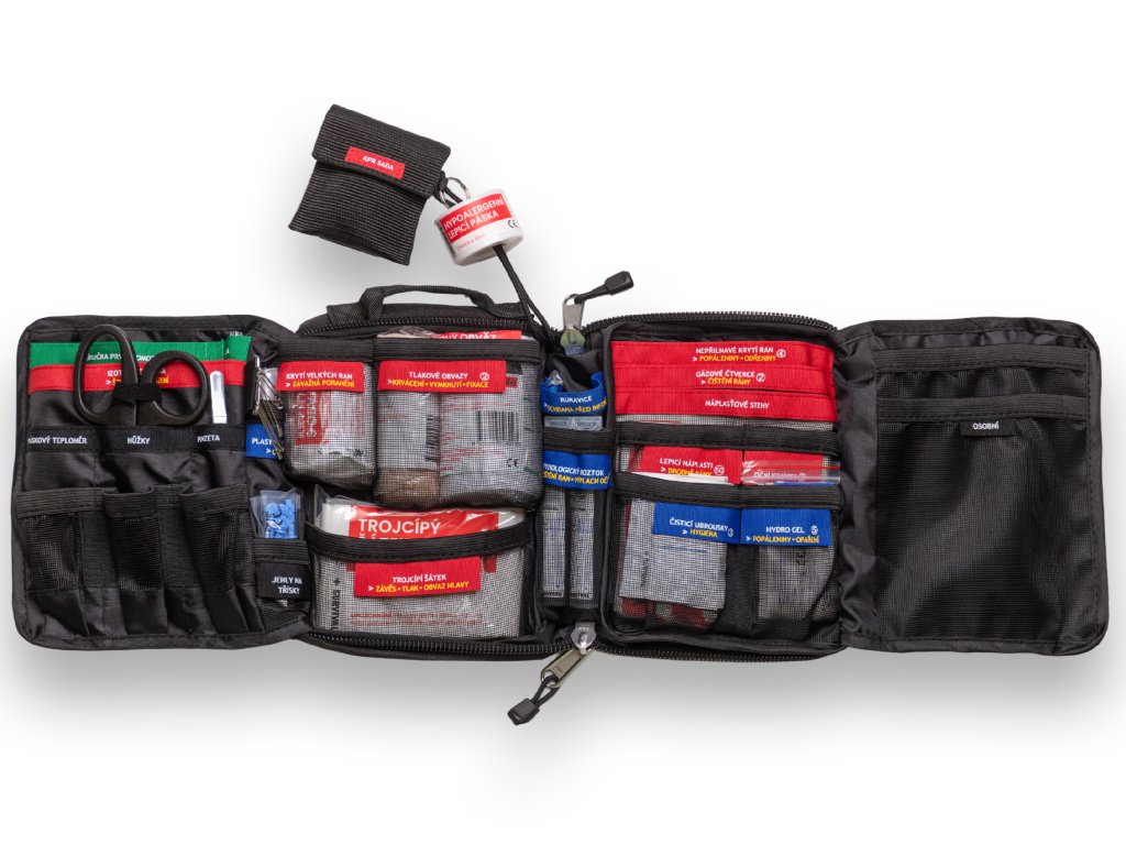 Medium KIT je sestaven tak, aby byl kompaktní, maximálně přehledný a snadno použitelný, což výrazně zlepšuje zvládnutí krizových situací — od drobných poranění až po náročnější úrazy.