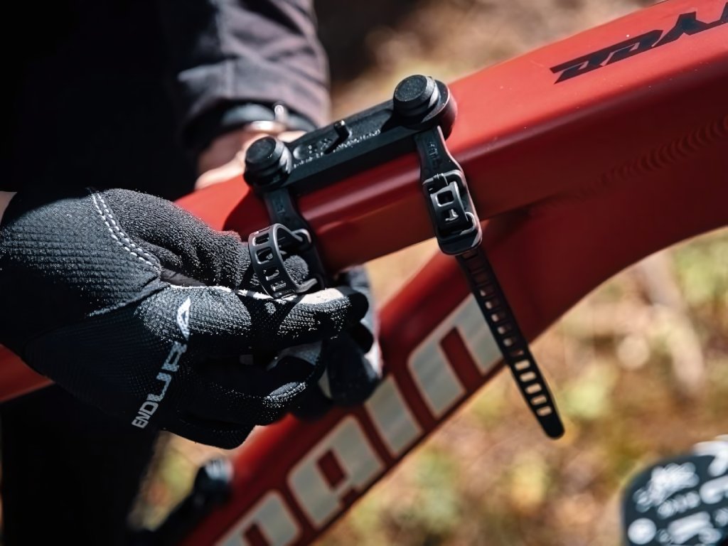 Tuhle základnu, na rozdíl od základny na rám místo košíku, můžete díky univerzálním popruhům připevnit kamkoli: na sedlovou trubku, na hlavní trubku mimo standardní pozice, klidně na přední vidli. Dodávané pásky vám dávají volnost.