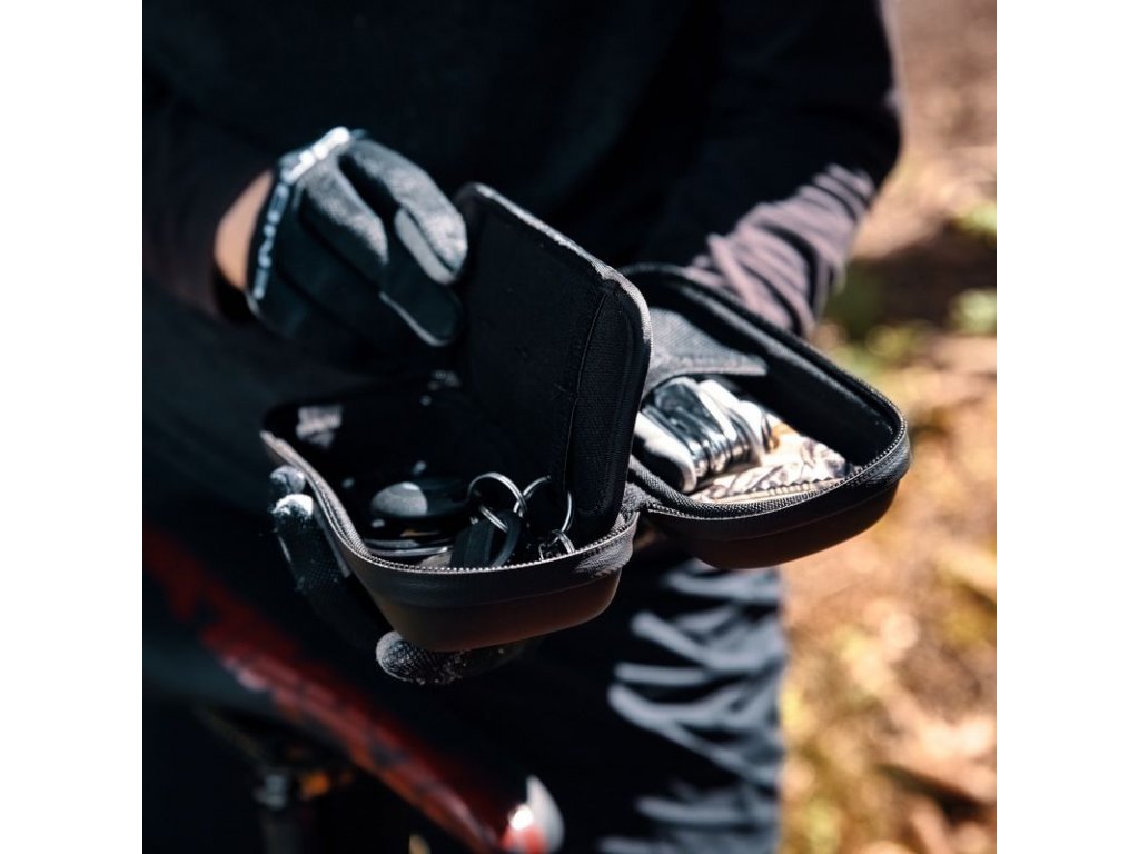 Do magnetického systému Fidlock nemusíte dávat jen bidony Fidlock, ale i tenhle parádní toolbox - brašnu na nářadí - Fidlock Twist. Pohodlně do něj dostanete náhradní duši, lepení, multiklíč, montpáky i pumpu – zkrátka všechno, co na cestách potřebujete, abyste nezůstali ve štychu.