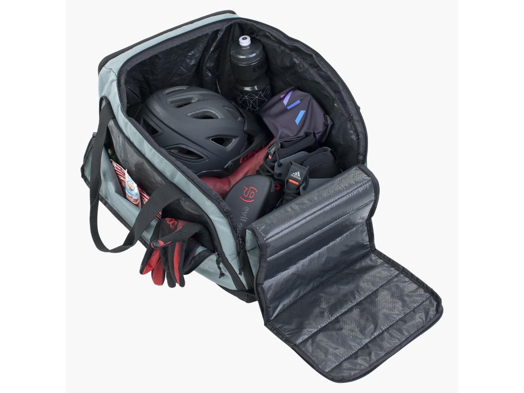 Evoc Gear Bag 35 znamená, že má objem 35 litrů. Vejde se do něj pohodlně přilba, tretry, brýle, rukavice, ponožky, šátek, větrovka či vesta. A ještě zbude prostor pro svačinu i něco energetického k zakousnutí. A když přijde zima, můžete dát do ní lyžáky a přilbu. Také zde tvůrci mysleli prakticky: po otevření velkého víka se jednak krásně zpřístupní celý obsah bagu, a jednak získáte suchou a čistou podložku na přezouvání treter.