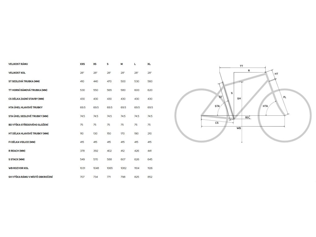 Podrobný rozpis geometrie najdete v tabulce mezi obrázky. Pří výběru velikost vyjděte z výšky své podstavy. Pokud jste na překryvu velikostí, tak dle našich zkušeností zvolte pro komfortní jízdu menší model.