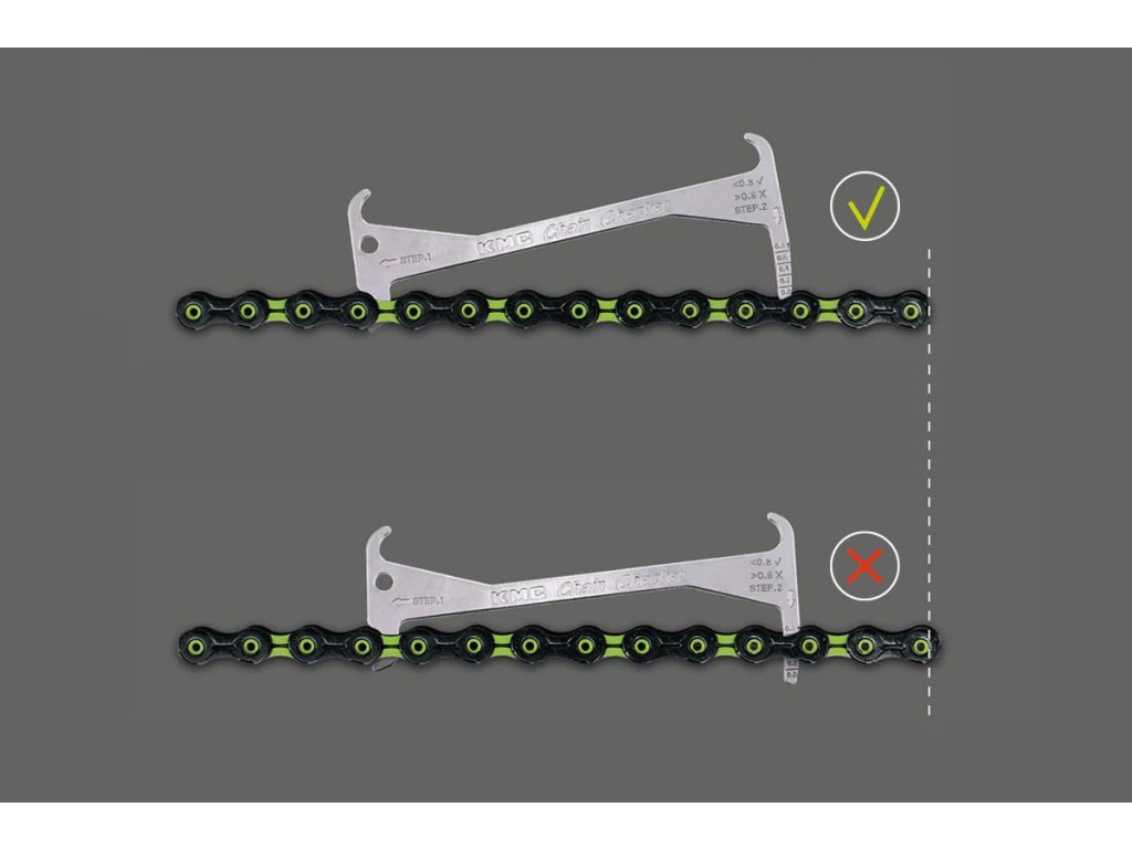 Speciální měrna řetězu, se kterou rychle zjistíte míru opotřebení řetězu. Na rozdíl od ostatních měrek tato přidává kompatibilitu s flat-top řetězy SRAM.