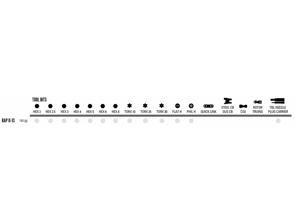 Středně vybavený kvalitní klíč Lezyne RAP II 13 Tubeless ocení především ti, kdo jezdí bezduše. Mimo všech klíčů pro základní servis kola obsahuje praktickou knotovačku a zásobník na dva knoty.