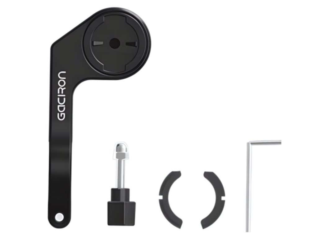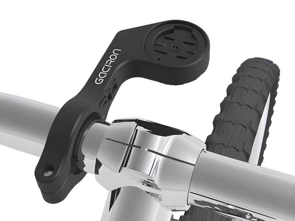 Jednoduchý ale maximálně praktický držák. V horní části je univerzální úchyt pro cyklonavigace Bryton, Garmin a další výrobce. Zespod je univerzální úchyt GoPro, který ale můžete vyměnit za ližinu pro přichycení některého ze světel Gaciron. Elegantnější už to být nemůže: počítač máte lépe na očích a světlo vám nepřekáží na řídítkách.