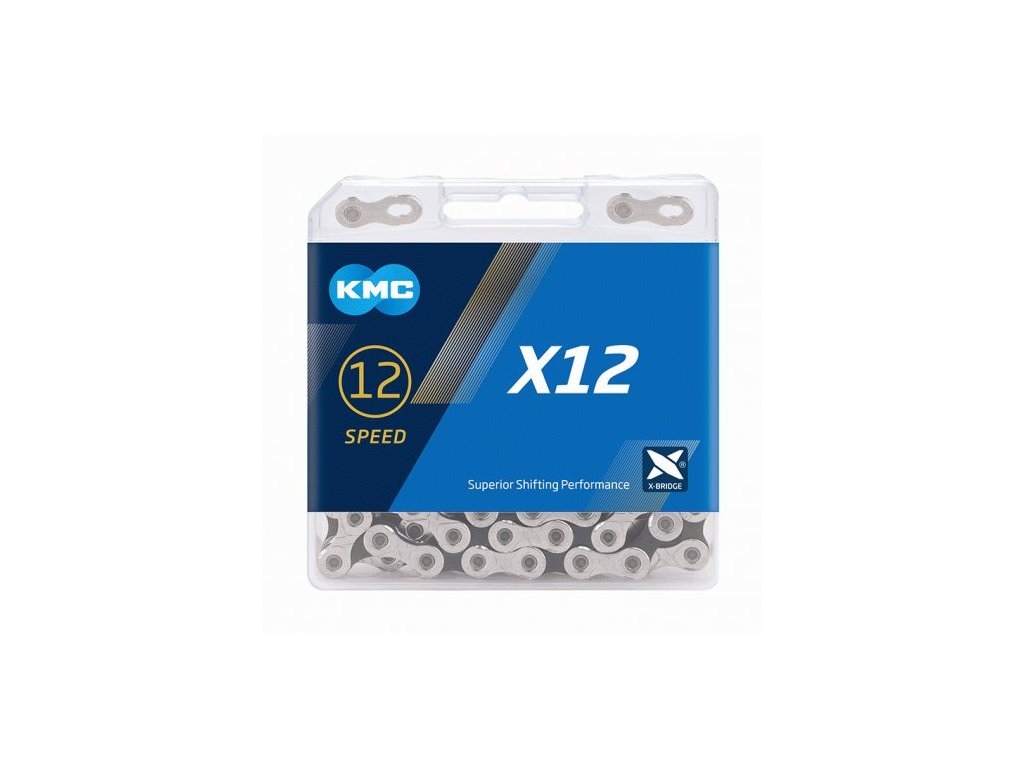 Řetěz KMC X12 v atraktivním stříbrno-černém provedení představuje ideální volbu pro všechny moderní 12rychlostní systémy značek Shimano, SRAM i Campagnolo. Díky preciznímu zpracování s technologií X-Bridge nabízí tento model mimořádně rychlé, plynulé a tiché řazení i při vysoké zátěži v terénu.