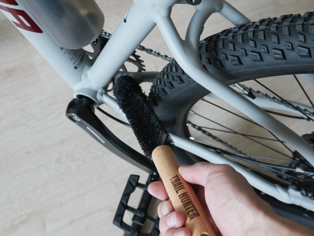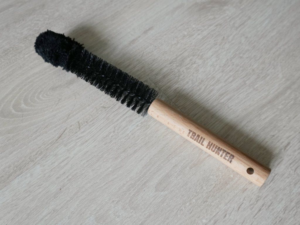 - Kartáč na těsná místa - tenký kartáč, se kterým můžete vyčistit každou skulinu na vašem rámu. Špička je z hustých jemných štětin, zbytek délky je z lehce hrubších vláken na odstranění i větších nánosů přilepeného bláta