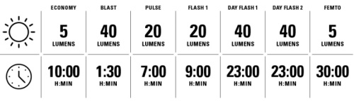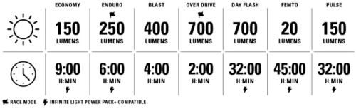 - Vlastnosti: IPX7, Denní záblesky, podpora pro powerbanku Infinite Light Power Pack+.