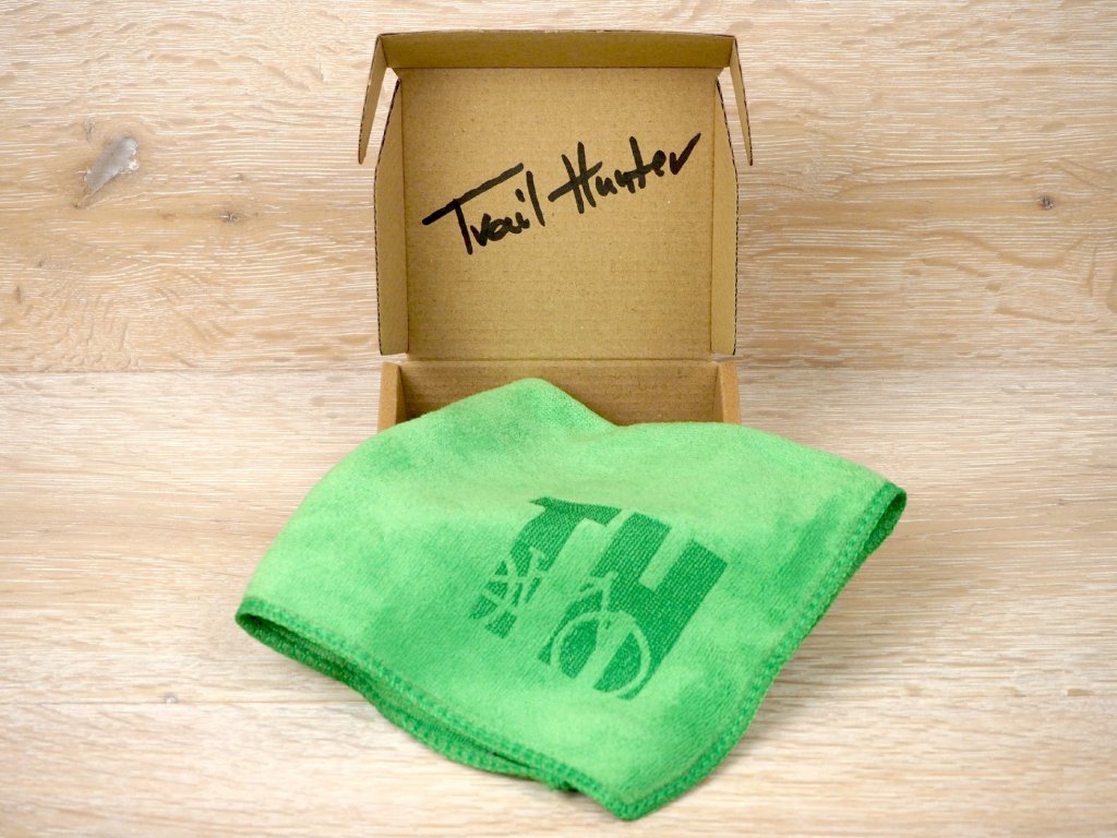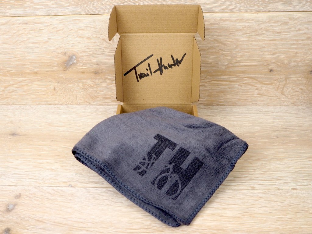 Toto není jen obyčejný hadr, tohle je TRAIL HUNTER HADR! :-) Nápad původně vznikl jako aprílový vtípek, ale teď už to myslím vážně. Opravdu se jedná o hadřík na očistu a leštění kola, do kterého jsem nechal laserem vygravírovat logo TH, aby bylo každému jasné, že tento hadřík je určený výhradně bajkerům. Teoreticky se dá využít i jako malý ručník na utírání potu. Ale primárně je určený na čištění.