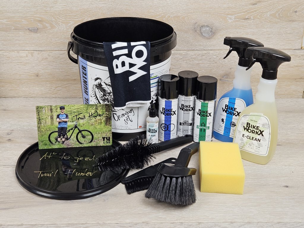 Tohle je ideální kýblík pro každého e-bajkera: obsahuje všechny čistící prostředky na mytí a odmaštění kola i kartáče. Skvělé řešení pro ty, kdo potřebují umít bajk třeba před panelákem nebo se hodí do auta na cesty do bikeparku.