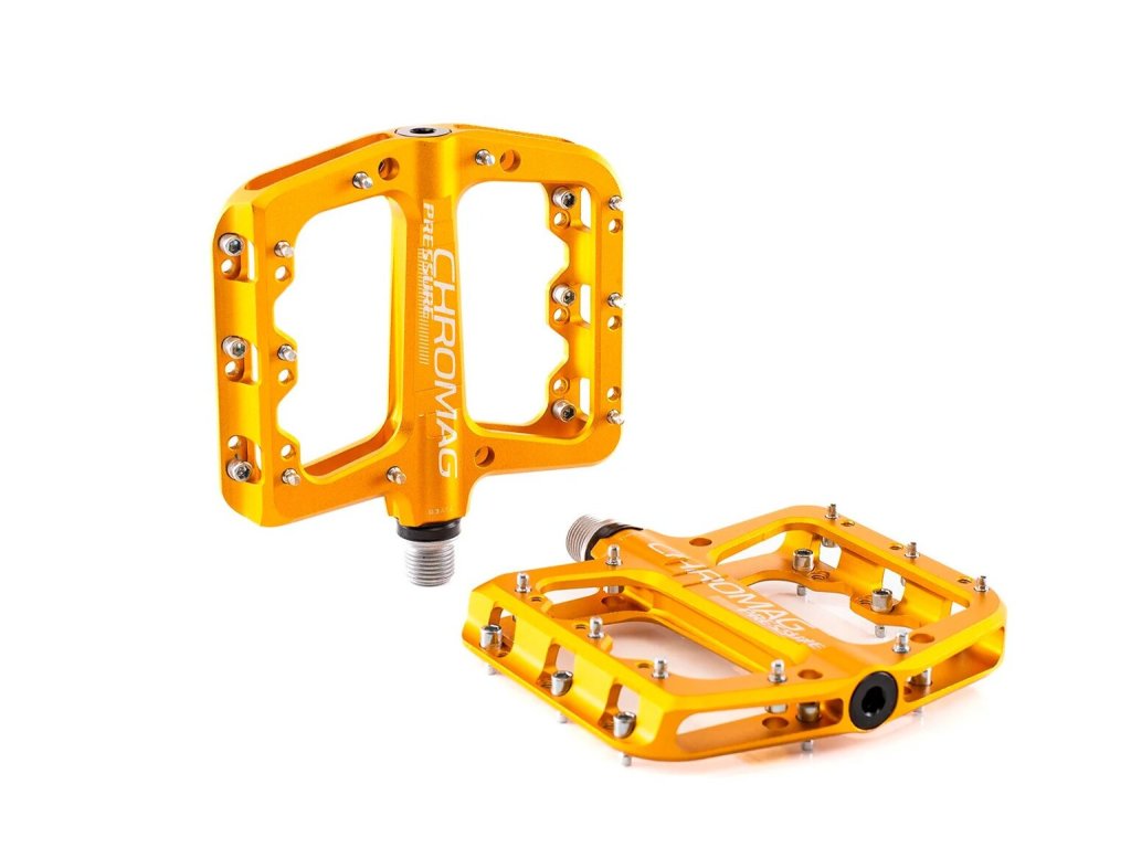 Chromag Pressure navazují na úspěšné platformy Chromag Contact. Také na Pressure už stihl Brandon Semenuk vyhrát Red Bull Rampage. Jsou delší, než Contacty, zachovávají si však nejmenší Q-faktor ze všech pedálů Chromagu.