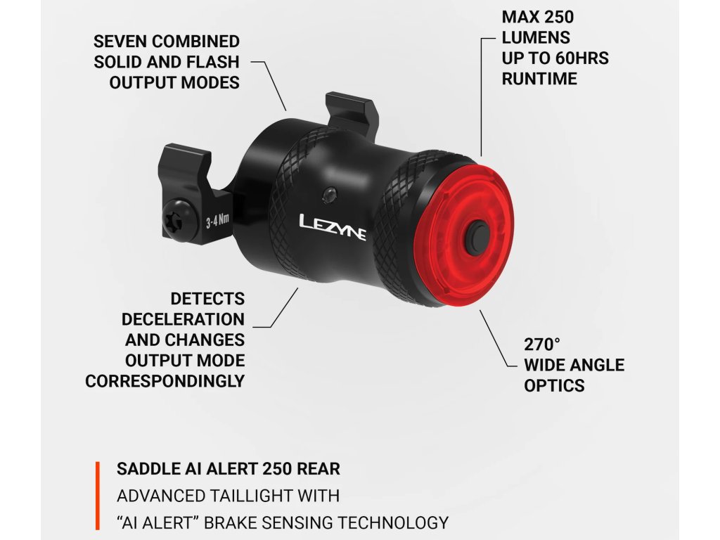 Zadní chytré světlo Lezyne Saddle Ai Alert 250