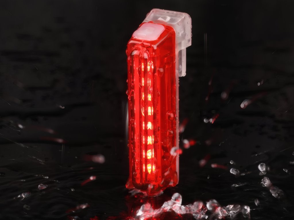 Základní zadní blikačka s maximálním výkonem 30 lumenů.